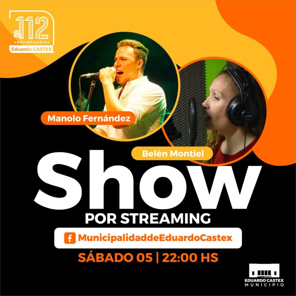 Esta noche será la primera velada musical enmarcada en los festejos de los 112 años de Eduardo Castex . A partir de las 22 actuarán Belén Montiel y Manolo Fernández vía steeeming, es decir podrán verlo por las redes sociales de la municipalidad
