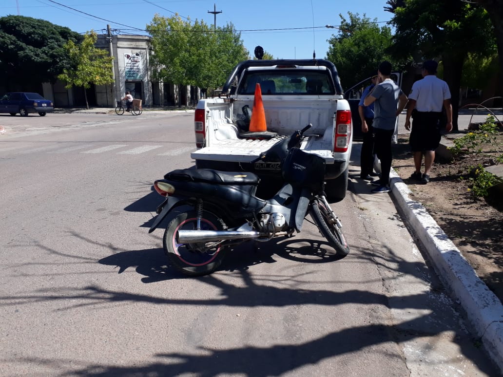 Pasadas las 11 de este sábado se produjo una colisión entre una camioneta Doblo y una moto 110 cc en la intersección de las calles Raúl B. Díaz y Avenida del Trabajo. El informe policial indicó que la camioneta conducida por una persona de apellido Giraudo transitaba por Raúl B. Díaz de oeste a este mientras que la moto al mando de una persona de apellido Montiel lo hacía por Avenida del Trabajo de norte a sur. Por causas no establecidas se produjo la colisión y los ocupantes de la moto, el conductor y un acompañante de 10 años fueron trasladados al hospital Pablo Lacoste donde se aguarda el informe médico.