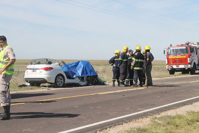 El siniestro vial ocurrió sobre la ruta provincial 1, a unos 8 kilómetros de Macachín, sobre una línea amarilla. En el lugar trabajaron bomberos y policías de esta localidad.