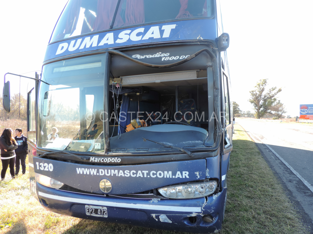 El interno 1320 de la empresa Dumas Cat al mando del chofer Emanuel Regojo (28) impactó la parte trasera de un acoplado marca Volvo, este último era conducido por Jorge Alberti (579 oriundo de Santa Rosa.