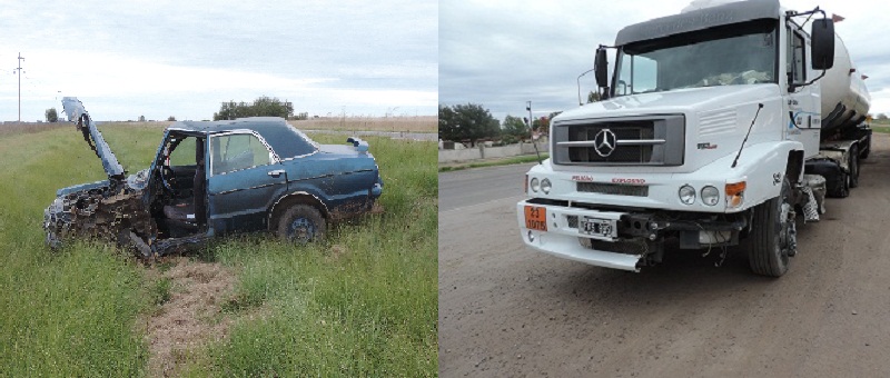 Minutos antes de los 8 hs en el kilómetro 415 de la Ruta Nacional 35 a 6 kilómetros al norte de Eduardo Castex se produjo una fuerte colisión entre un auto y un camión.