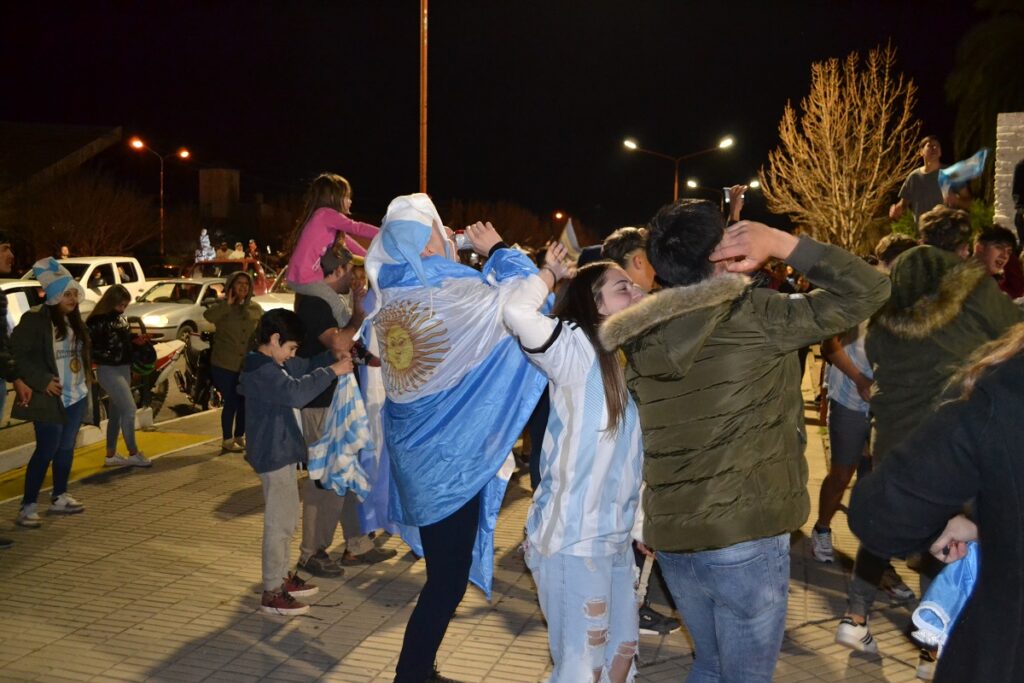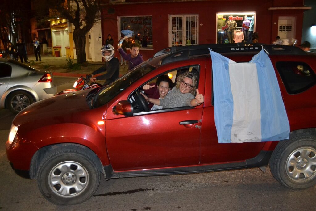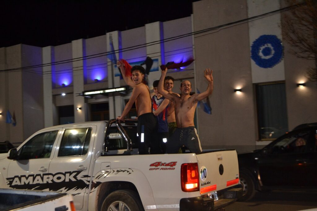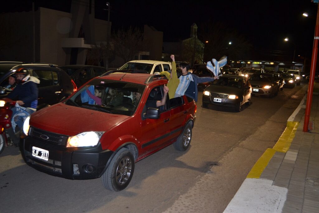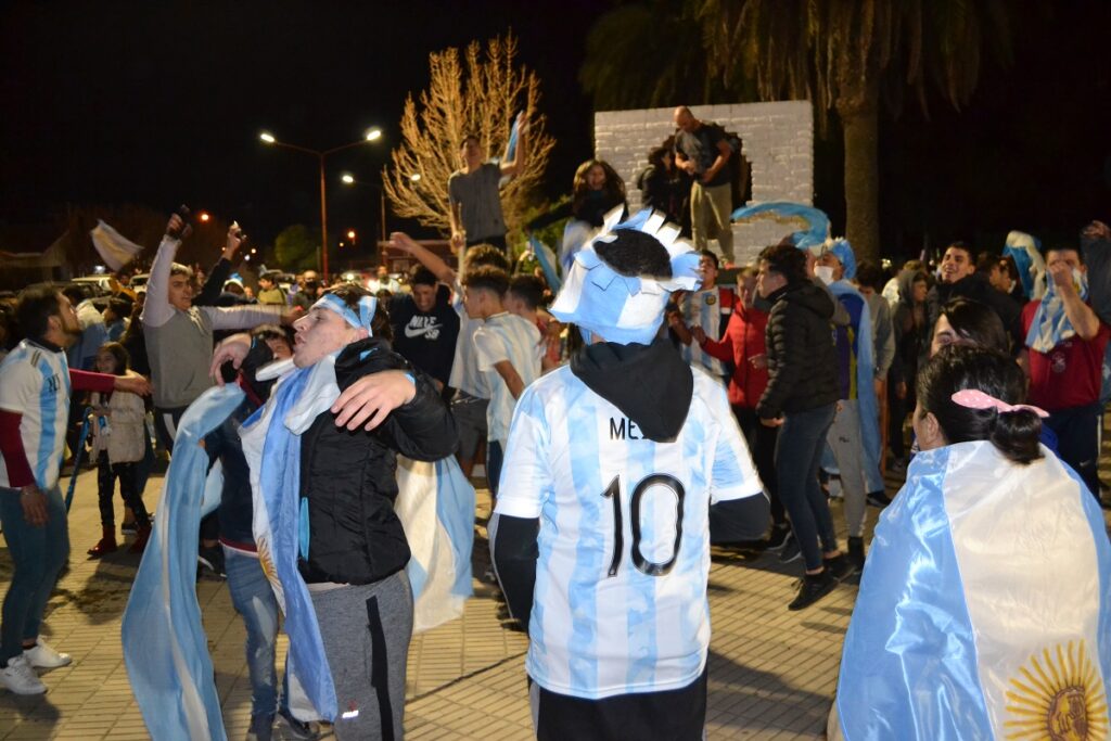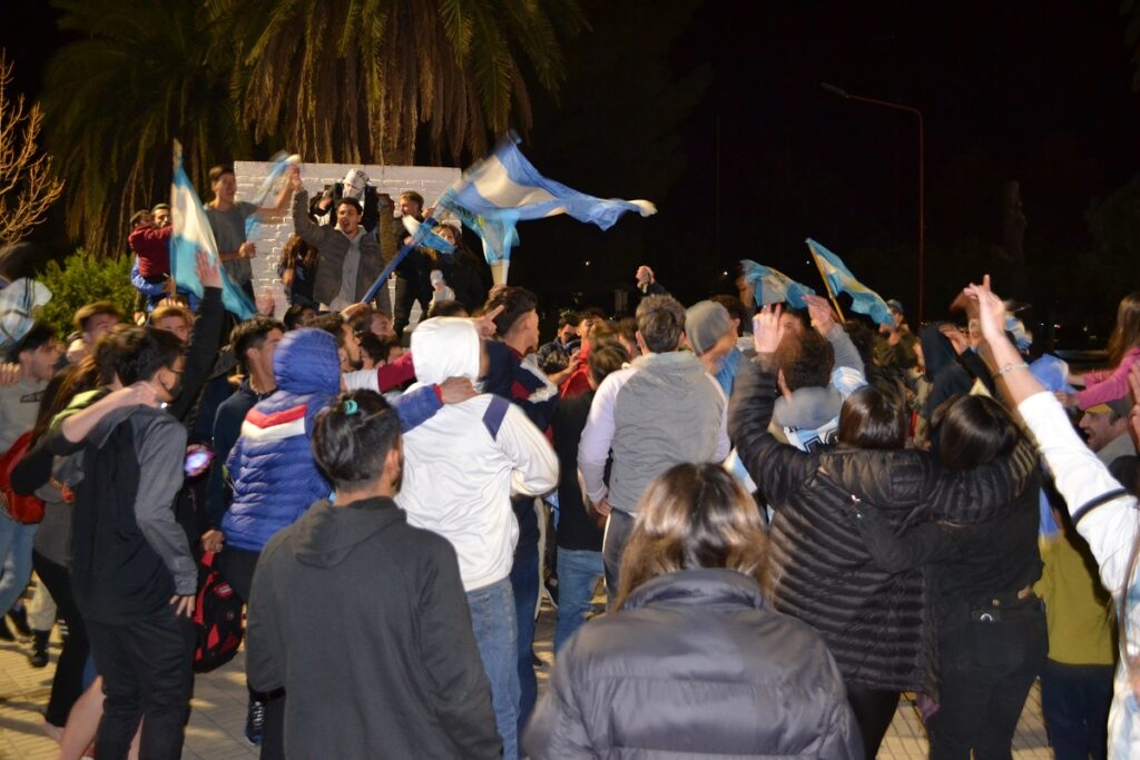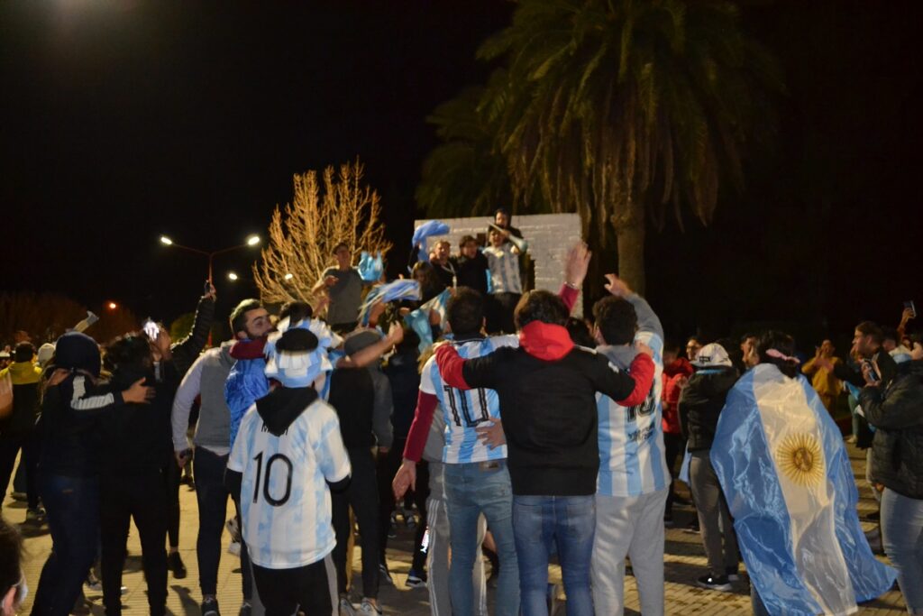 Ni bien terminó el partido cientos de castenses se trasladaron al centro de nuestra ciudad para festejar, algunos en autos, camionetas, motos, bicicletas y otros en la tradicional fuente de la plaza San Martín