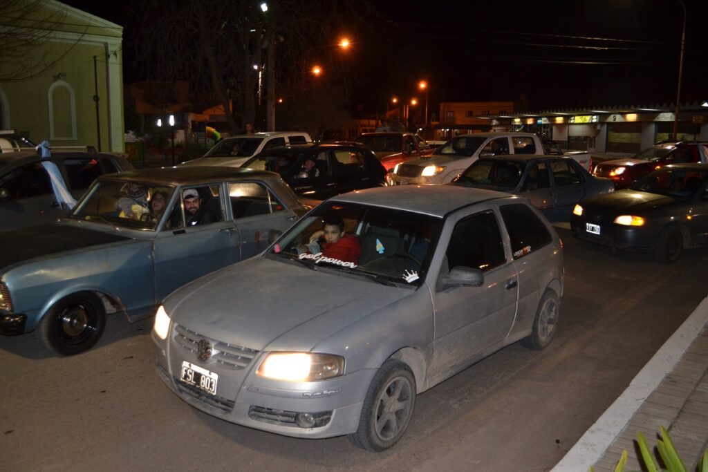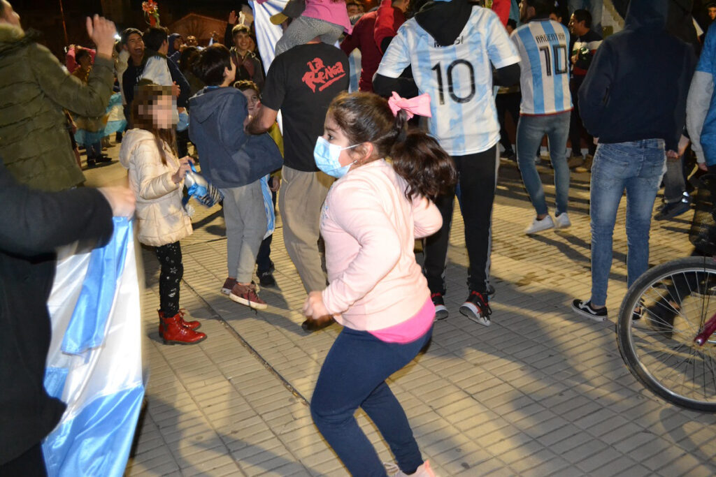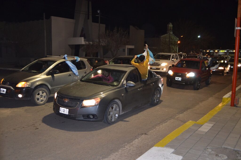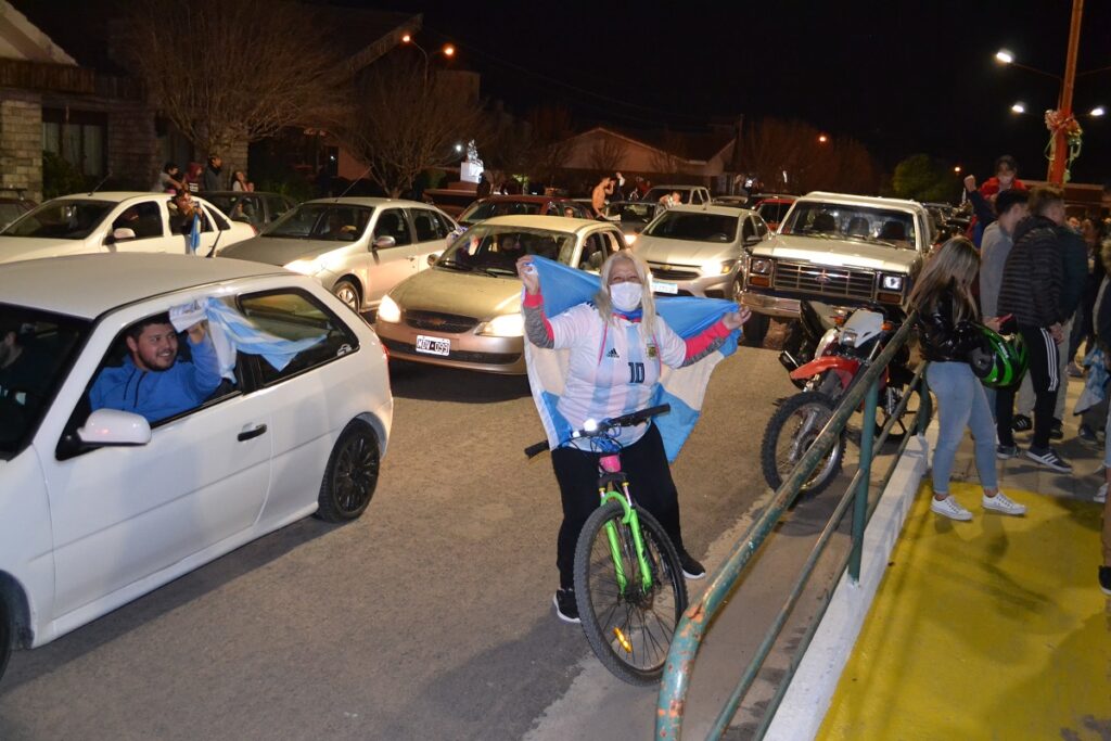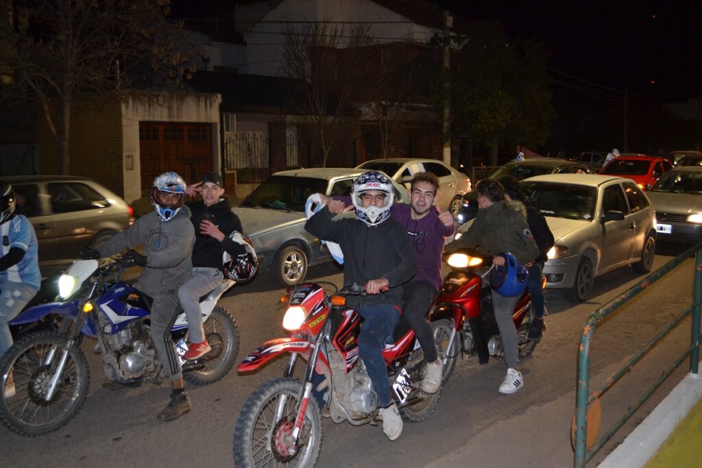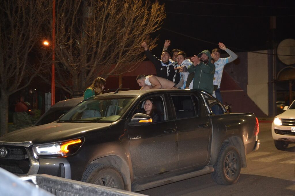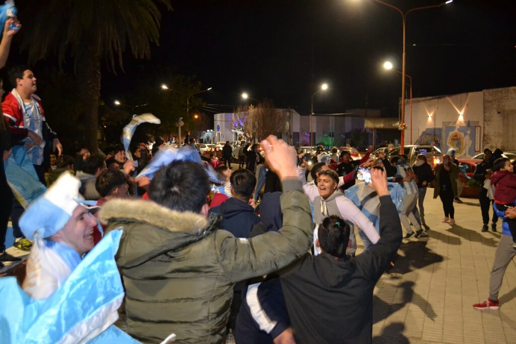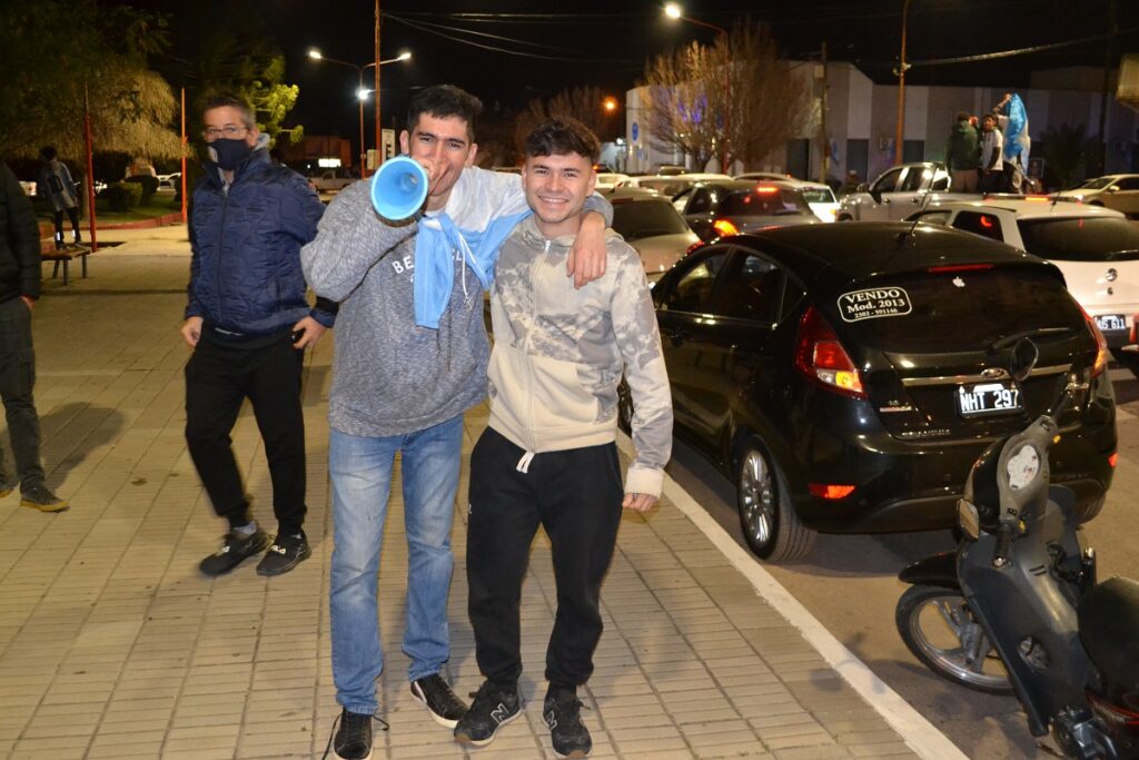 Ni bien terminó el partido cientos de castenses se trasladaron al centro de nuestra ciudad para festejar, algunos en autos, camionetas, motos, bicicletas y otros en la tradicional fuente de la plaza San Martín