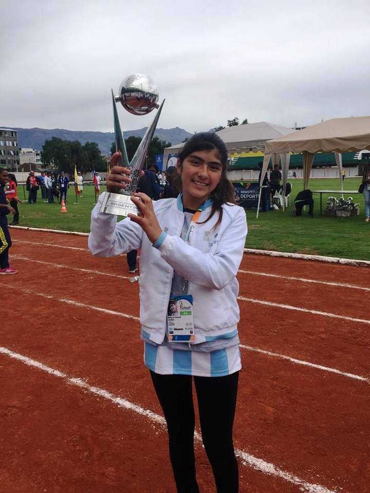 La joven Milagros Gomez, integrante de la Escuela de Atletismo Municipal (Deporte Adaptado de La Pampa) participó integrando el equipo argentino de atletismo adaptado en la ciudad de Cochabamba, República de Bolivia, en la final de los XXIII Juegos Sudamericanos Escolares Sub-14.-