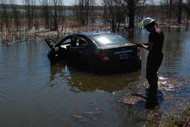 Debido al accidente el tránsito estuvo interrumpido totalmente por unos momentos, para retirar el auto Chevrolet del agua, tarea que estuvo a cargo de Bomberos Voluntarios.