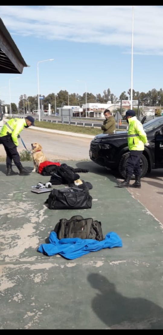Según conoció este medio en una camioneta transitaban cuatro personas oriundas de la provincia de Buenos Aires, todos iban con el permiso nacional que los habilitaba para viajar. Ante la consulta de la policía y el estado de nerviosismo que presentó una persona que viajaba en la parte trasera del rodado el perro Catriel realizó su trabajo y encontró dos envoltorios con marihuana en uno de los bolsos. Por esta razón se inició una causa en la que interviene el Juzgado Federal.