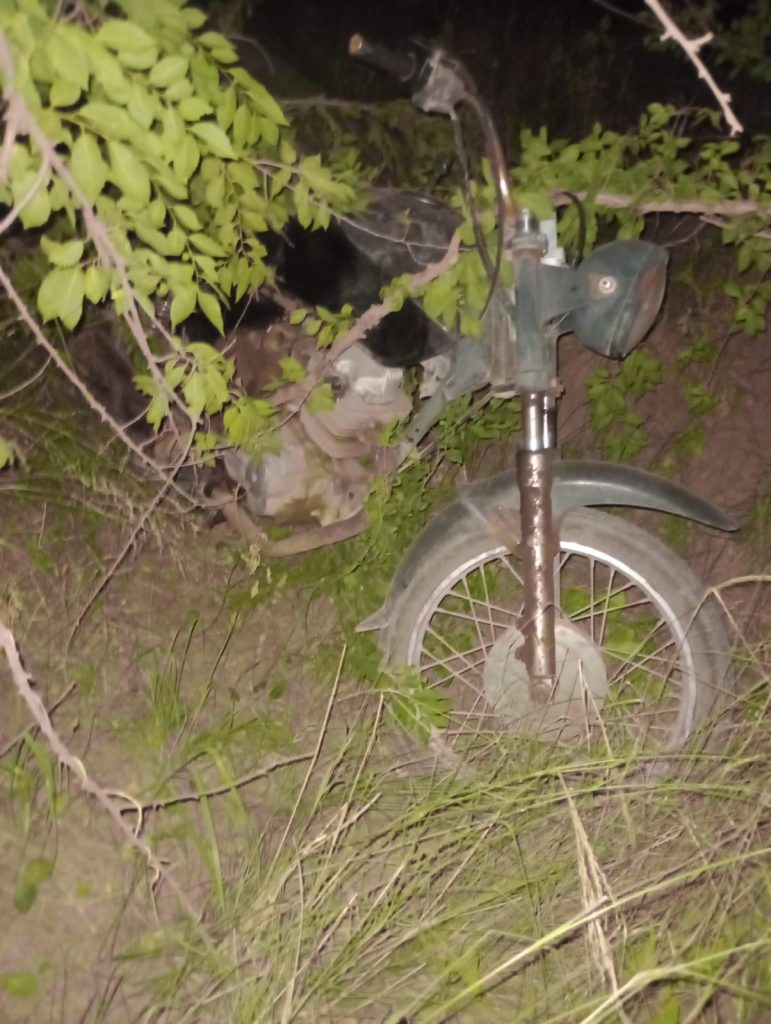 El otro hecho fue en la noche del jueves cuando un llamado anónimo da aviso a la policía que había una moto abandonada en un camino rural en la zona de Bouef. Al llegar la policía constatan una moto 150 cc y un novillito faenado, tenían un cuarto y una paleta empaquetada junto a la moto. Luego de varias horas no pudieron encontrar a los ocupantes de la moto que se habrían marchado a pie pero pudieron constatar el propietario del rodado por lo que se inició una causa caratulada «S/Abigeato».