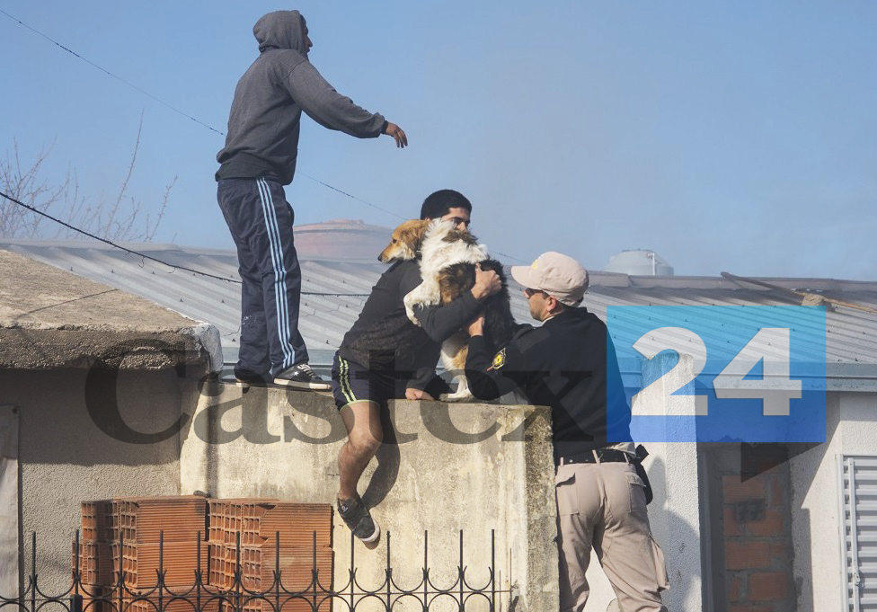 Durante el siniestro policías y dueños del lugar rescataron a una mascota que asustada por lo que estaba sucediendo fue sacada del patio de la vivienda a través del techo, muy nervioso el animal luego fue calmado con mucho afecto mientras los servidores públicos trabajaban para sofocar el incendio