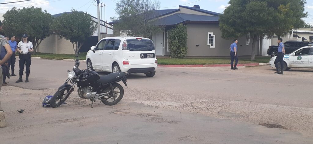 Cerca de las 15.30 horas de hoy se produjo una colisión entre una moto y un automóvil en la intersección de las calles Alem y Corrientes- En el lugar trabajó personal del hospital Pablo Lacoste y policías de la comisaría departamental