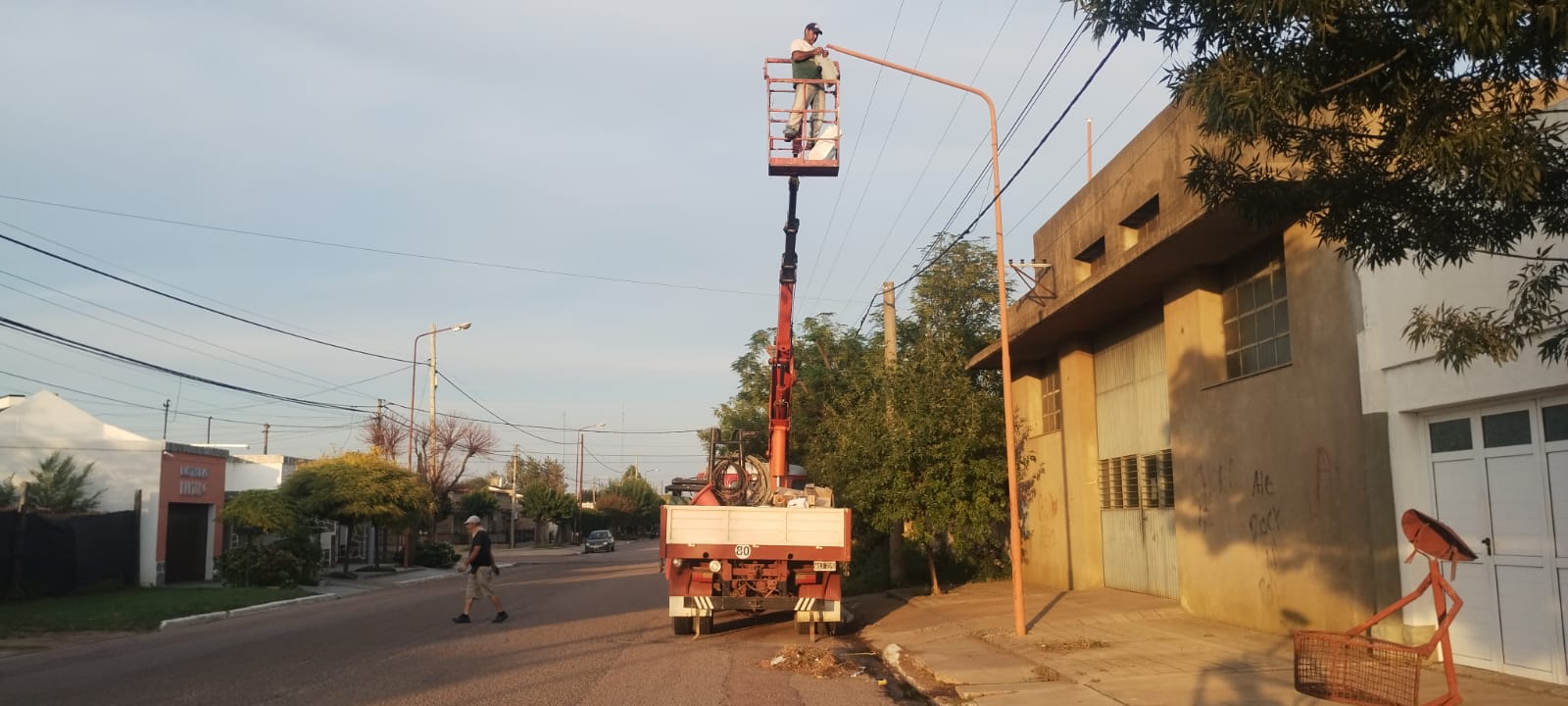 En la mañana de hoy una de las empresas contratadas para el recambio de luminarias led en Eduardo Castex comenzó con los trabajos.