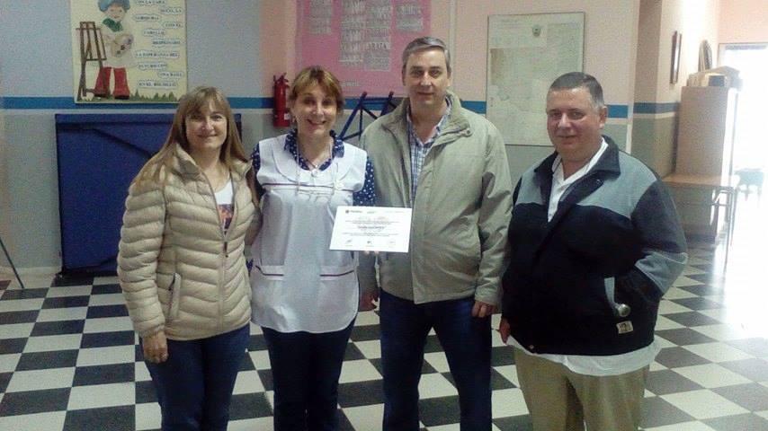 Claudia Tamagnone, Darío Balsa y Marcelo Bonetto, también recorrieron aquellas instituciones que no pudieron asistir a dicho acto, dejando el presente y el saludo a todas las maestras y maestros en su día.