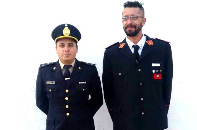 El voluntario junto al responsable de la comisaría baronense, Ricardo Vivas, fueron los primeros en llegar para cubrir la emergencia desatada en un sector de la Ruta Provincial Nº 7, cerca de la localidad de Colonia Barón.