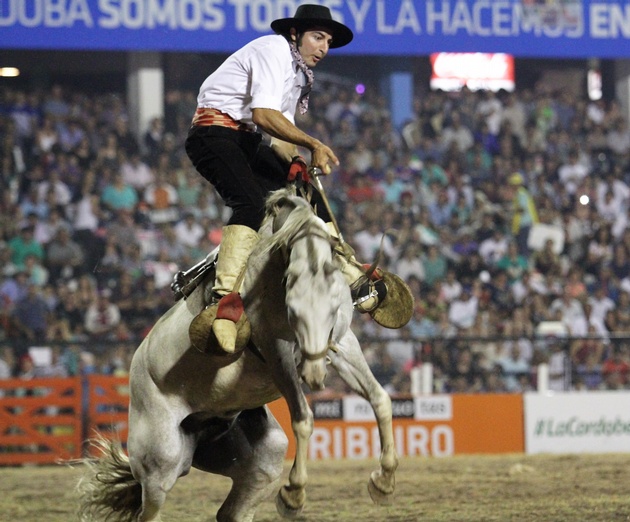 El jinete pampeano Alejandro Cruz Ramos lidera la competencia de gurupa sureña en el festival nacional de Doma y Folklore de “Jesús María”.