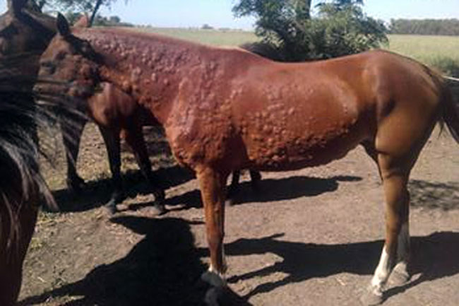 En las últimas horas se conoció que Marsiglio se presentó en la Unidad de Atención Primaria (UAP) del Ministerio Público Fiscal de la II Circunscripción Judicial con asiento en esta ciudad, y denunció que tras observar tareas de fumigación en un campo lindante a un predio de su propiedad, distintos vegetales que se hallan en una huerta sufrieron ‘deformaciones’ en las hojas, al igual que árboles de paraíso; mientras que también apuntó que halló una yegua con la piel ‘totalmente brotada’ y que luego de percibir el fuerte olor de agroquímicos padeció picazón en el rostro.