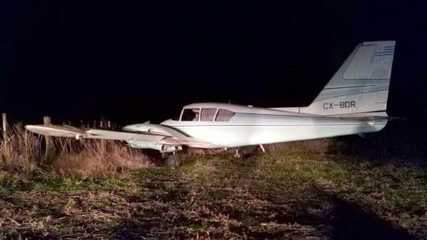 Allí, el ruido alertó a los pobladores de la zona que dieron rápido aviso a la policía local. Sin embargo, al llegar al lugar sólo encontraron la avioneta abandonada en una zona descampada, un bimotor Piper PA-23-35, matrícula CX-BDR de Uruguay, color celeste y blanco.