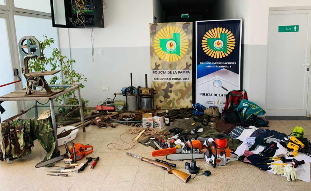 Allí secuestraron carnes y diferentes armas, que están bajo pericias. También varias herramientas que habían sido robadas de una cabaña en la Reserva Provincial Parque Luro.