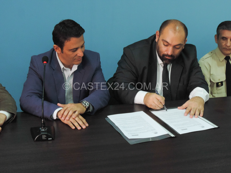 En el día de hoy en el Salón de Conferencias se firmó el acta de acuerdo entre la municipalidad de Eduardo Castex y el Gobierno de La Pampa donde la comuna castense cederá el sistema de video vigilancia que será monitoreado desde la comisaría local.