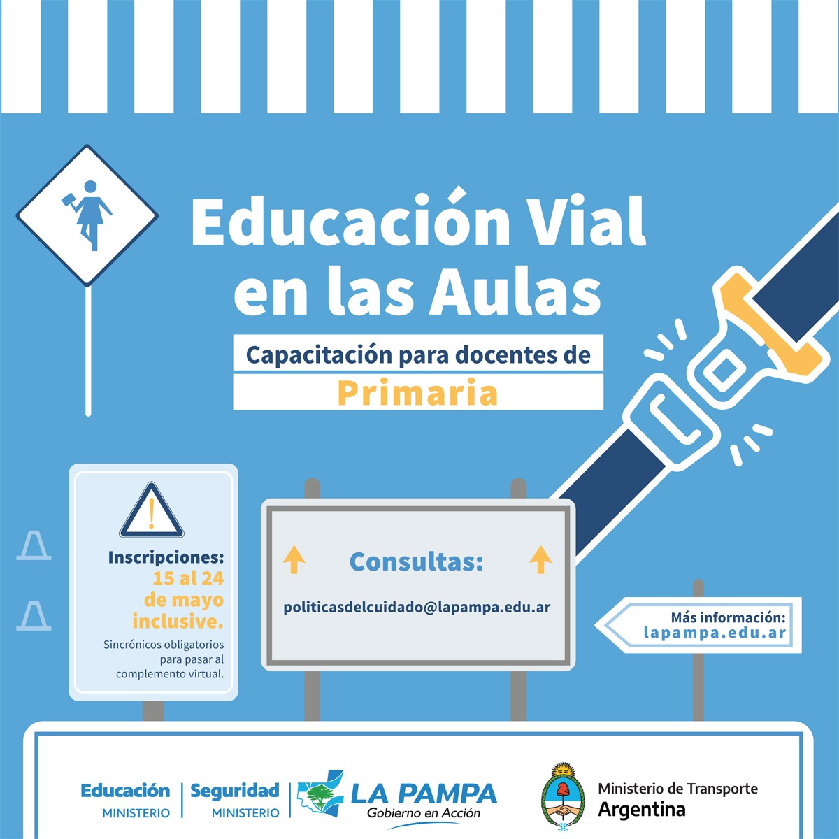 Entre los días 15 y 24 de mayo inclusive se recibirán las inscripciones ingresando a: https://sitio.lapampa.edu.ar/index.php/educacion-vial/capacitacion