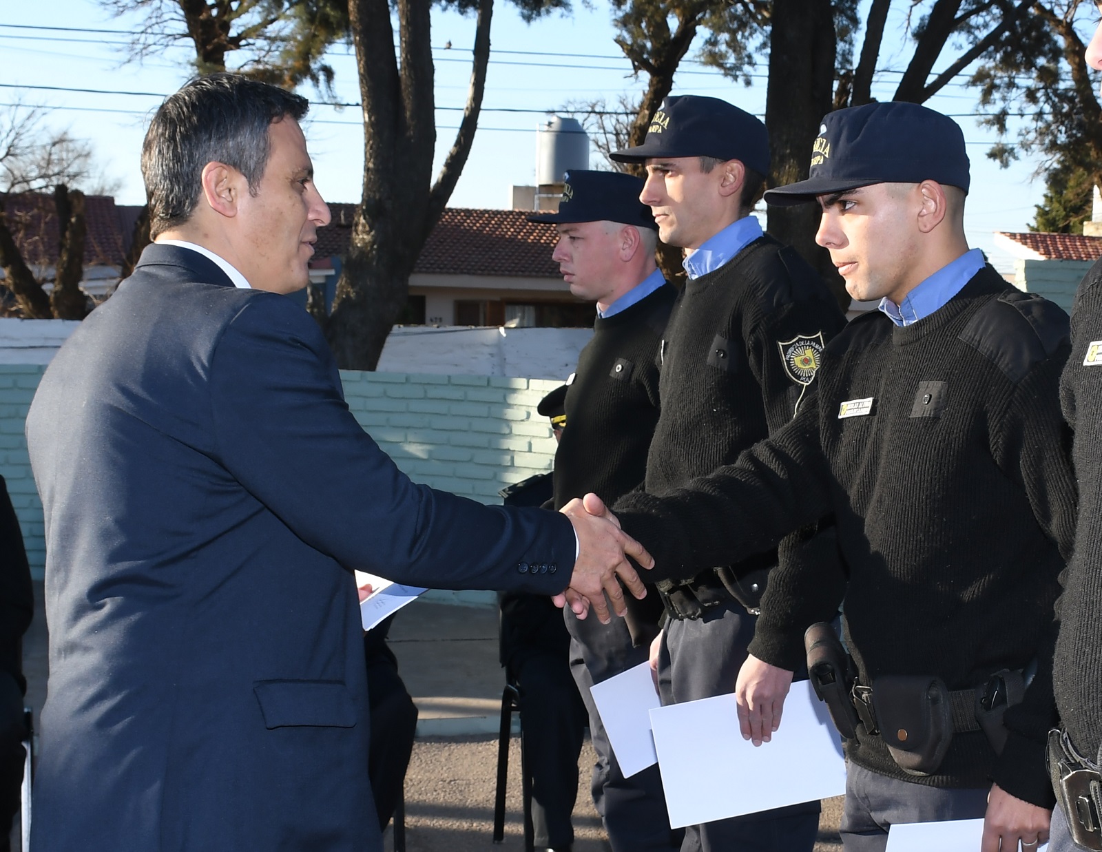 En la ceremonia se realizó la jura de la Constitución Provincial de los nuevos agentes de Policía y se les entregó los certificados de la primera promoción de formación profesional nivel III.
