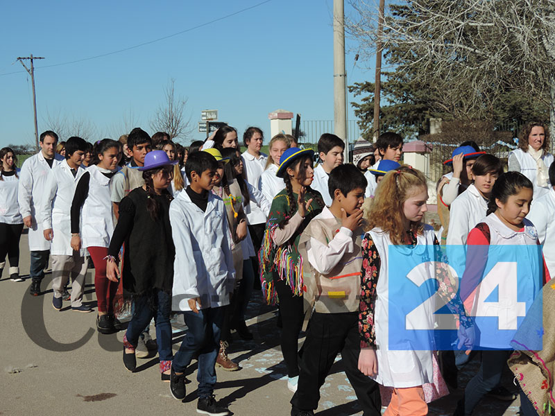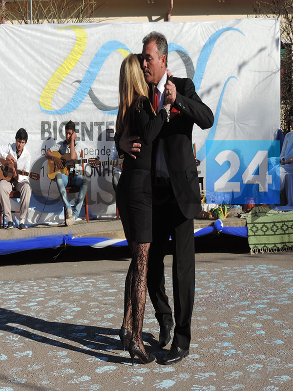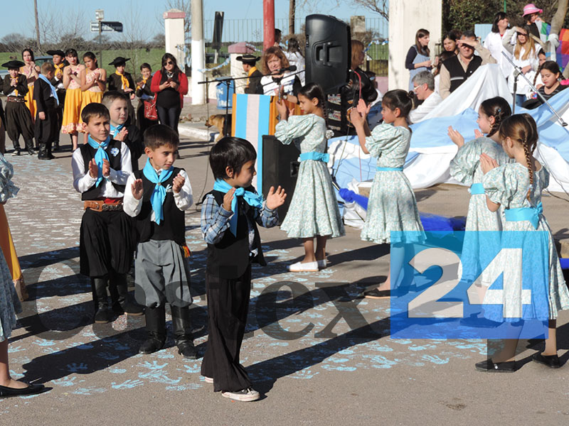 Fueron más de dos horas las que duró este acto correspondiente a la fecha patria del 9 de Julio, participó toda la comunidad educativa como también las 20 instituciones y organizaciones que cuenta la localidad. Hubo desfile y bailes, entre ellos el intedente Ángel Ré bailó el Tango junto a su hermana. Al finalizar el acto hubo un reconocimiento para Laly Robledo