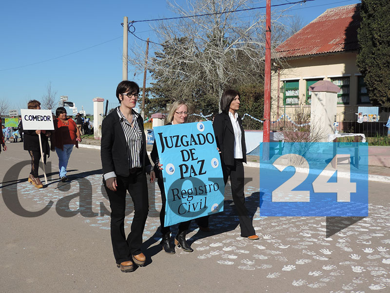 Los primeros locutores de este evento fueron los vecinos Silvia Pereyra de Marotti y Guillermo Sánchez quienes fueron presentado a todos los que desfilaron frente a la Escuela Hogar, entre ellos los alumnos de esa institución, actualmente concurren 138 alumnos y cuenta con 22 internos, también realizó su participación el Jardín de Infantes «La Hormiguita Viajera»