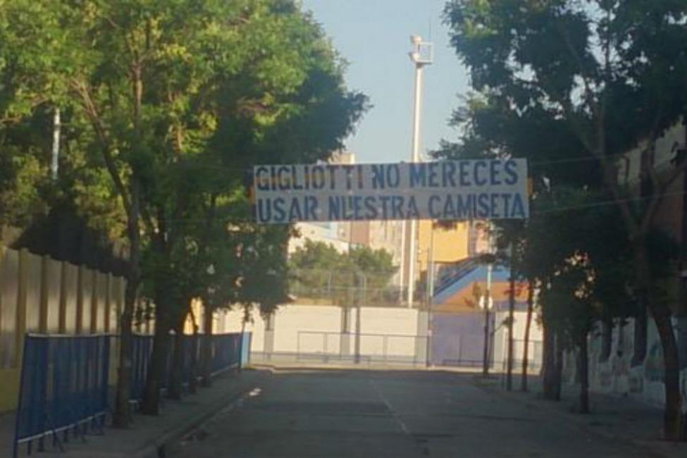 “Gigliotti no mereces usar nuestra camiseta”, fue la frase contundente en cada pasacalle que se observó en varios sectores, por ejemplo el de la calle Del Valle Iberlucea, a unos 50 metros del predio Pedro Pompilio, aledaño al estadio, el lugar donde entrenará el plantel desde las 16.30.