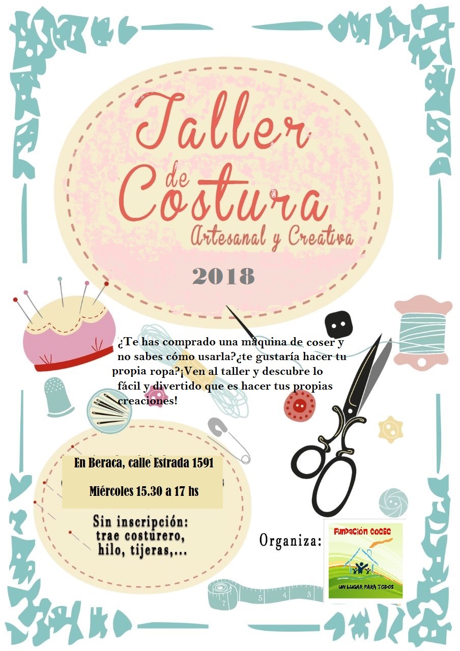 TALLER DE COSTURA Y RECICLADO DE TELAS: miércoles de 15:30 hs a 17:00