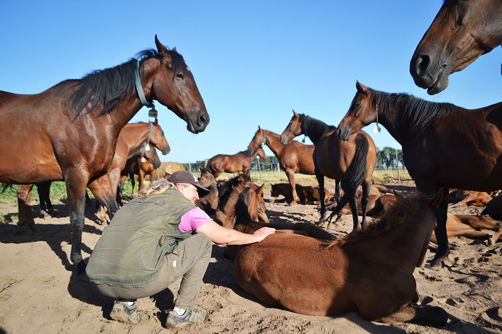 En lo que respecta al trabajo en el Haras es muy variado e intenso dependiendo la época del año, “hay temporada de servicio que es cuando se preña a la yegua, la temporada de parto que coincide con esta que va desde julio a diciembre que es una etapa muy agitada de trabajo en el haras y a los potrillos se le hacen análisis periódicos, se les enseña a cabrestear, ecografías semanales para ver sus pulmones, enseñarles que acepten las órdenes, que aprendan a comer y más adelante se los amansa pero es un proceso muy sencillo porque están acostumbrados al estar con humanos desde muy pequeños”, explicó Florencia