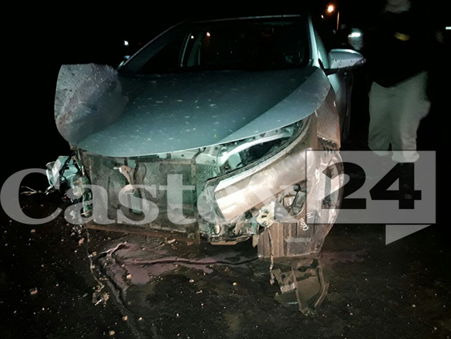 A las 6 de hoy se produjo un impresionante choque en el ingreso a Eduardo Castex donde un vehículo terminó haciendo trompos arriba de la ruta 35 y golpeando con los guardarrail