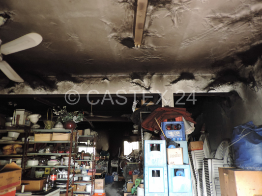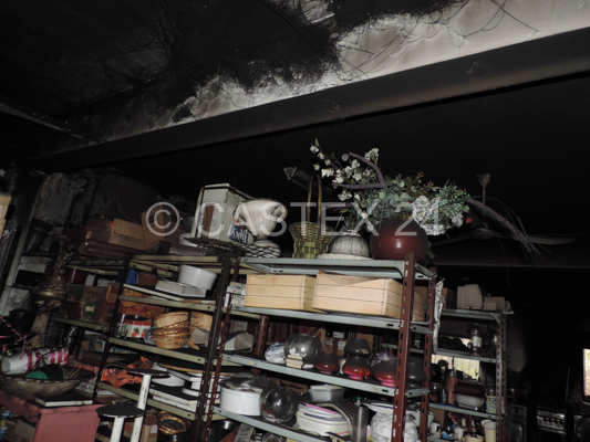 En el depósito hay elementos de gastronomía y decoración, allí autores desconocidos intentaron ingresar por una ventana trasera y como no pudieron cometer el acto, prendieron fuego una cortina de pvc, el foco ígneo se propagó por un sector del techo y provocó numerosos daños en los elementos que se encuentran allí. Si bien el fuego no tomó grandes dimensiones el hollín ensució todo lo que se encuentra dentro del depósito, provocando serios daños en telas, manteles y cortinados