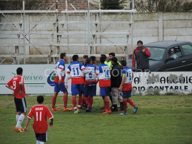 En el primer tiempo se fueron expulsados en los locales Cristián Ortíz por intentar golpear a un jugador sin pelota, Ezequiel Riera por protestar en la misma jugada y minutos más tarde Kevin Chávez por una fuerte falta a Bertino