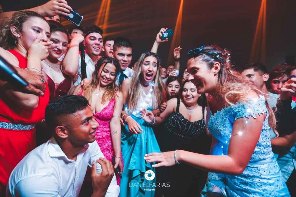 Facundo Montero sorprendió a su novia y a todos los presentes la noche en que «Barby» Cuello, festejaba su egreso.