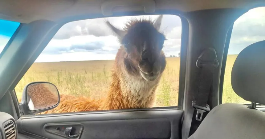 «Cosas lindas que tiene el campo y la curiosidad de este amigo», posteó este jueves al mediodía el diputado nacional Daniel Kroneberger, divertido, con un par de fotos que lo muestran recorriendo en camioneta y una llama, mansa, asomándose por la ventanilla del vehículo.