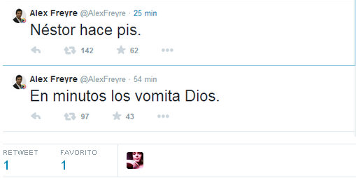 El militante y funcionario kirchnerista Alex Freyre provocó nuevamente mediante su cuenta de Twitter y señaló, refiriendo a la lluvia que «Néstor hace pis».