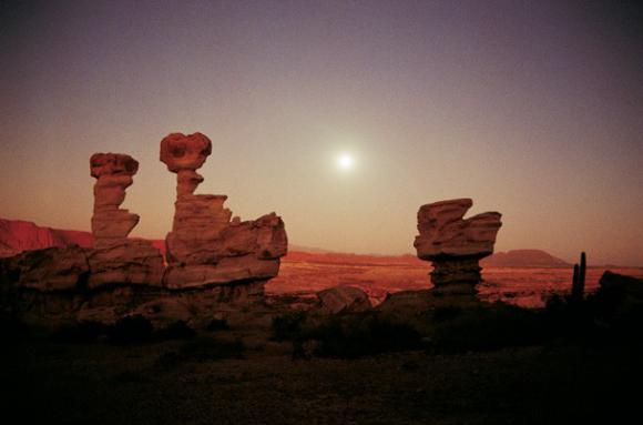 Un «periscopio» de la emblemática formación El Submarino, del Parque Provincial Ischigualasto (conocido también por El Valle de la Luna), en la provicnia de San Juan cayó producto de los fuertes vientos que azotaron la zona en las últimas jornadas.