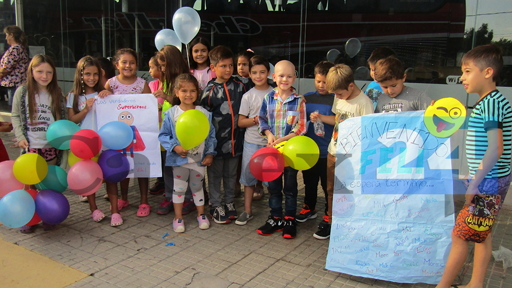 Desde muy temprano familiares, amigos, vecinos y compañeros de FELI se congregaron en la terminal de nuestra localidad para recibir a este super héroe que la luchó junto a sus padres