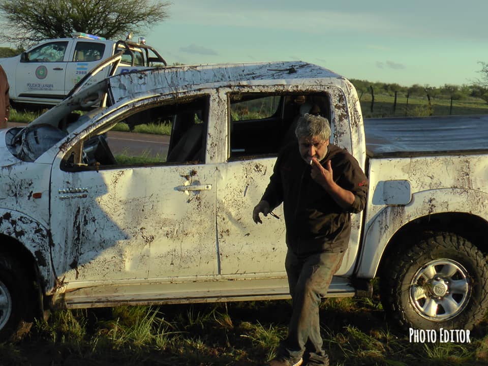 El conductor, de apellido Villalba, regresaba de Santa Rosa. El granizo en la cinta asfáltica provocó que perdiera el control de la Hilux y volcara.
