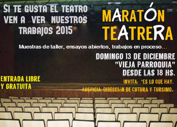 El Grupo de teatro “Es Lo que Hay” informa que el próximo DOMINGO 13 DE DICIEMBRE a partir de las 18 hs en la Vieja Parroquia, se realizará el cierre del taller de teatro, auspiciado por la Dirección de Cultura y Turismo de la Municipalidad de Eduardo Castex, entrada libre y gratuita.