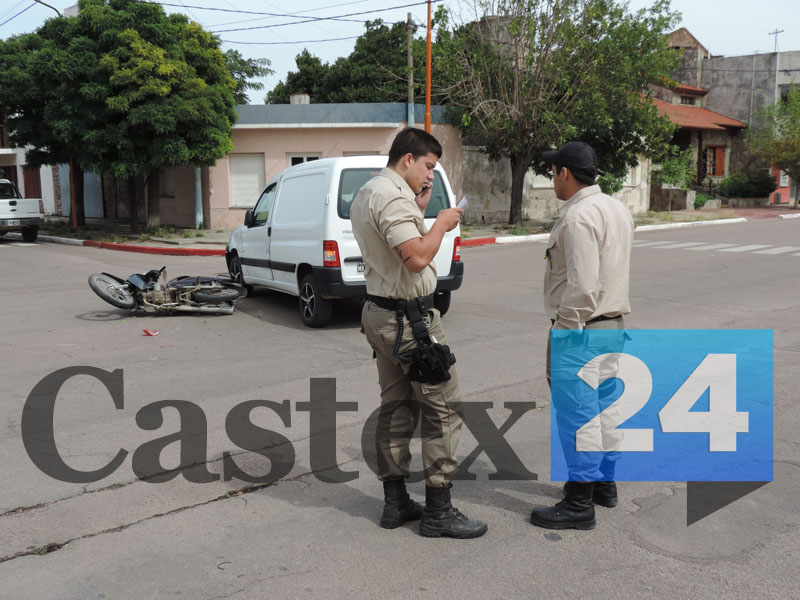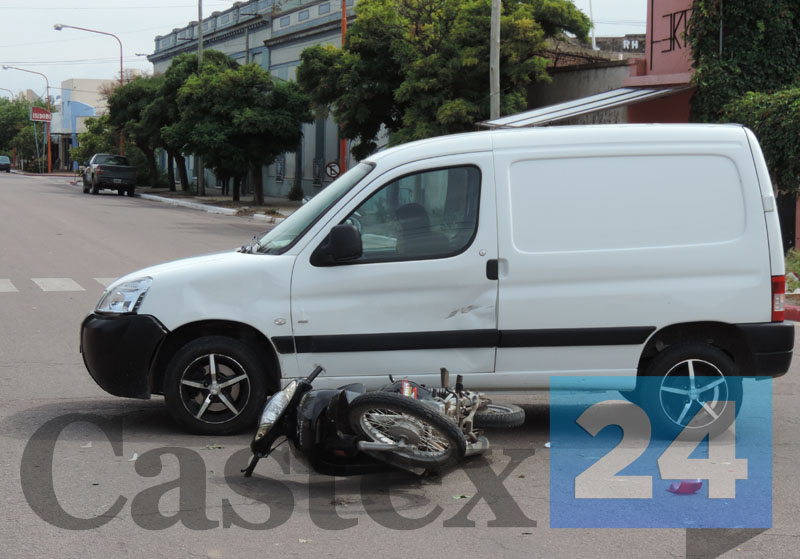 Datos tomados en el lugar indican que un utilitario al mando de una persona de apellido Loperena transitaba por Raúl B. Díaz de este a oeste y por Sarmiento lo hacía una moto Corven 110 cc de sur a norte, por causas aún no establecidas ambos rodados colisionaron. El conductor de la moto mayor de edad fue trasladado al hospital local y se desconoce su estado pero presentaría un fuerte golpe en una de sus piernas