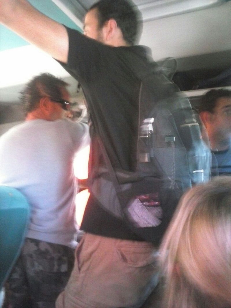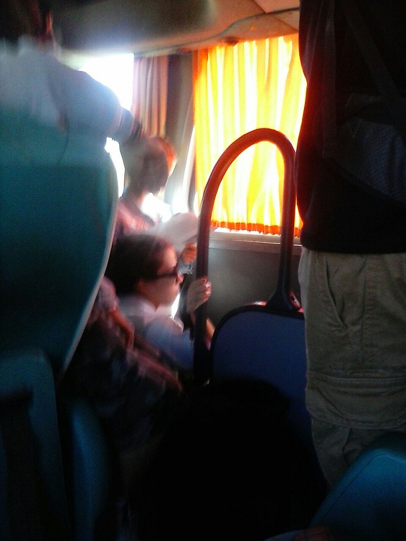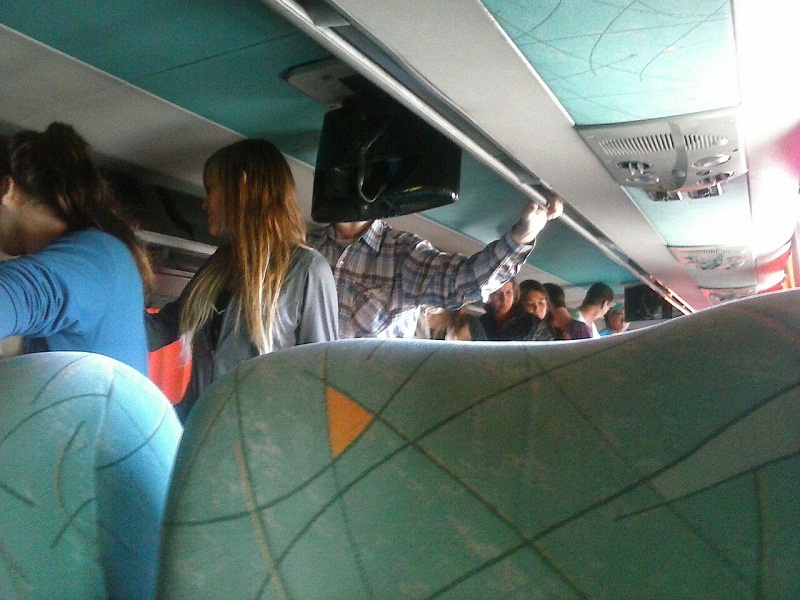 Las pasajeras expresaron que llegaron con varios minutos de retraso a Santa Rosa y muchas personas -aproximadamente veinte- debieron viajar paradas, sentadas en el piso o en el espacio de la escalera.
