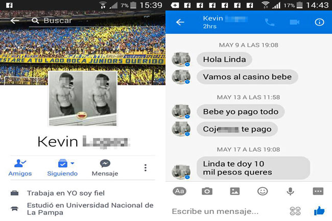“Nos pusimos de acuerdo entre nosotros (ya que él y su mujer acudieron a la Policía y les dijeron que no podían hacer mucho) y me puse en contacto con esta persona, llamado Kevin (…), obviamente con un facebook trucho, con foto de perfil de un nene de no más de 15 años, para llamar la atención de las nenas y quieran conocerlo y demás”, siguió.