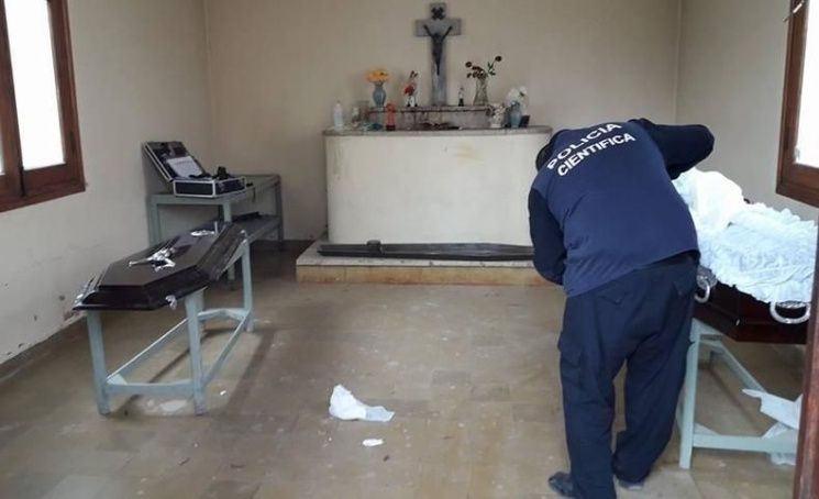Ocurrió en un cementerio de la localidad bonaerense de Carmen de Patagones. El cadáver de la mujer fue hallado a 10 metros de la capilla donde iba a ser velada. Detalles y fotos escalofriantes.