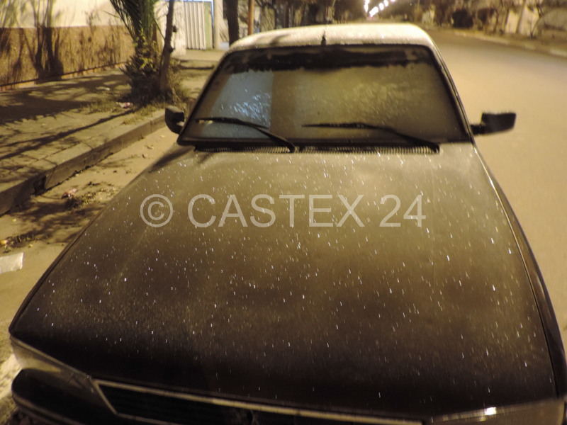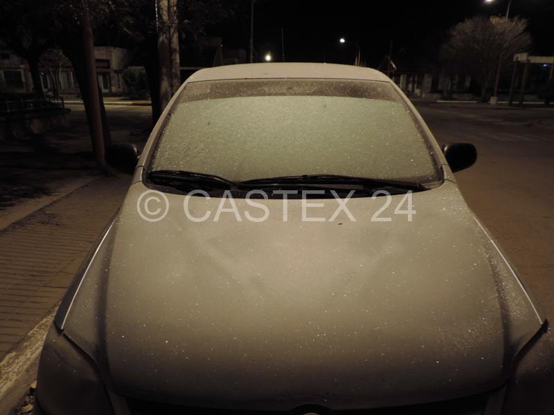 La temperatura descendió bastante en Eduardo Castex y se hizo notar en los vehículos que «durmieron afuera», a primera hora de hoy se pudo ver como varios de ellos amanecieron con la capa de hielo