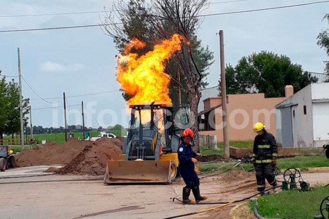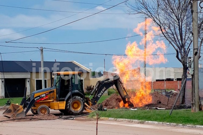 “Estaba la retro zanjeando” y eso habría roto el caño que después generó el incendio en la intersección de las calles Malvinas Argentinas y Alsina.