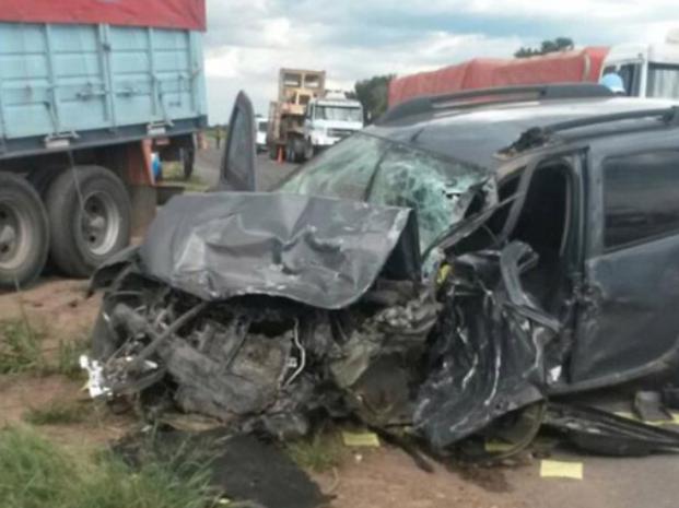 El accidente, por causas que se investigan, se produjo alrededor de las 15 cuando la Renault Duster que conducía golpeó con una de las ruedas traseras del acoplado de un camión y luego chocó de frente contra otro camión.