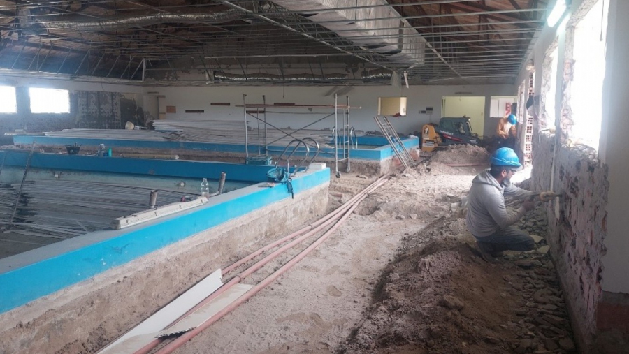 En lo que atañe a la instalación termomecánica se trabaja en la puesta en marcha del equipo para climatizar la pileta. Este dispositivo completó su vida útil y el objetivo inmediato es ponerlo en funcionamiento en condiciones óptimas para garantizar que cumpla los requisitos para la cual fue creada.