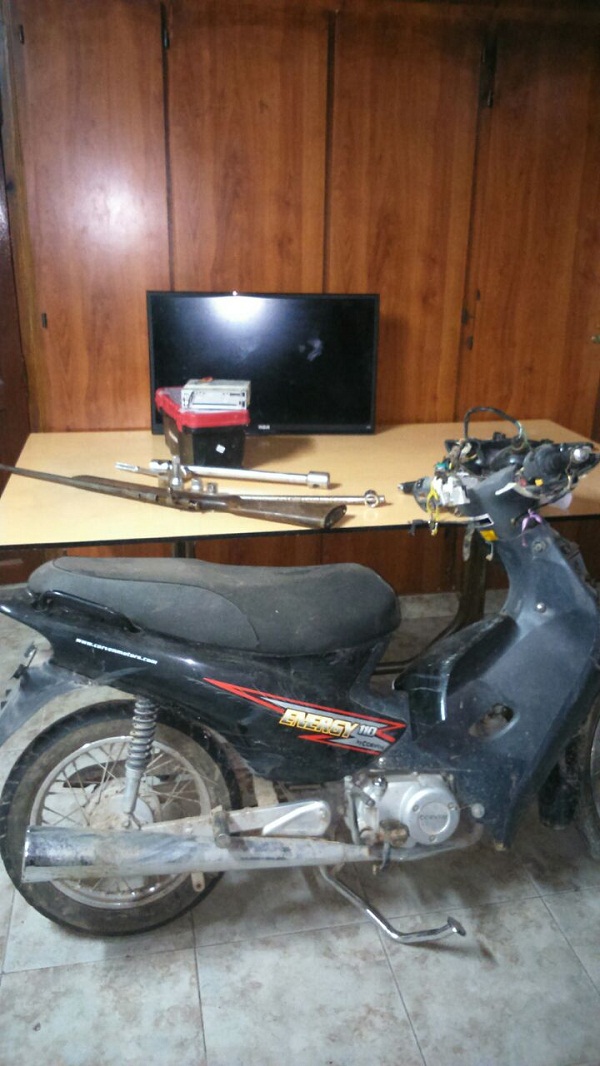 Recuperan fusil, moto y tv robados en Eduardo Castex