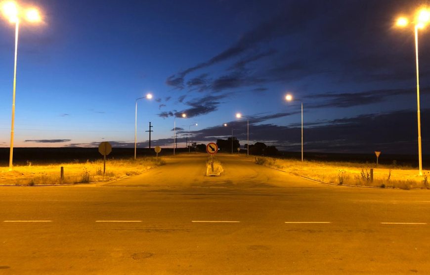 La Dirección Provincial de Vialidad continúa con el programa de iluminación de accesos a localidades y cruces de rutas provinciales y nacionales para otorgar mayores garantías en seguridad vial a las y los pampeanos y turistas que circulan por la Provincia.