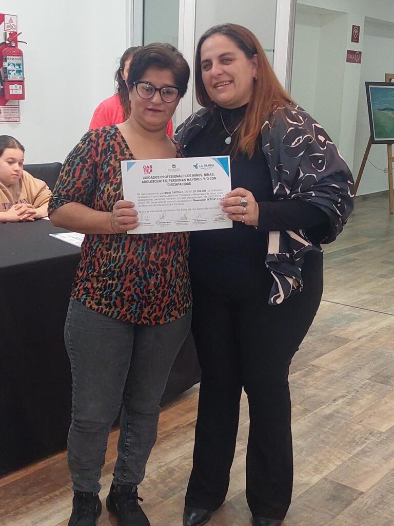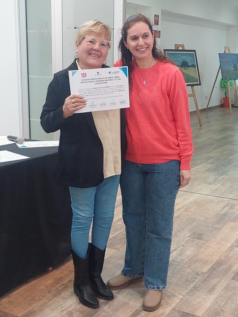 En el Centro Cultural Municipal de Eduardo Castex se realizó la entrega de certificados a personas que realizaron el curso en 𝗖𝘂𝗶𝗱𝗮𝗱𝗼𝘀 𝗣𝗿𝗼𝗳𝗲𝘀𝗶𝗼𝗻𝗮𝗹𝗲𝘀 𝗱𝗲 𝗡𝗶𝗻̃𝗮𝘀, 𝗡𝗶𝗻̃𝗼𝘀, 𝗔𝗱𝗼𝗹𝗲𝘀𝗰𝗲𝗻𝘁𝗲𝘀, 𝗣𝗲𝗿𝘀𝗼𝗻𝗮𝘀 𝗺𝗮𝘆𝗼𝗿𝗲𝘀 𝘆/𝗼 𝗰𝗼𝗻 𝗗𝗶𝘀𝗰𝗮𝗽𝗮𝗰𝗶𝗱𝗮𝗱.
