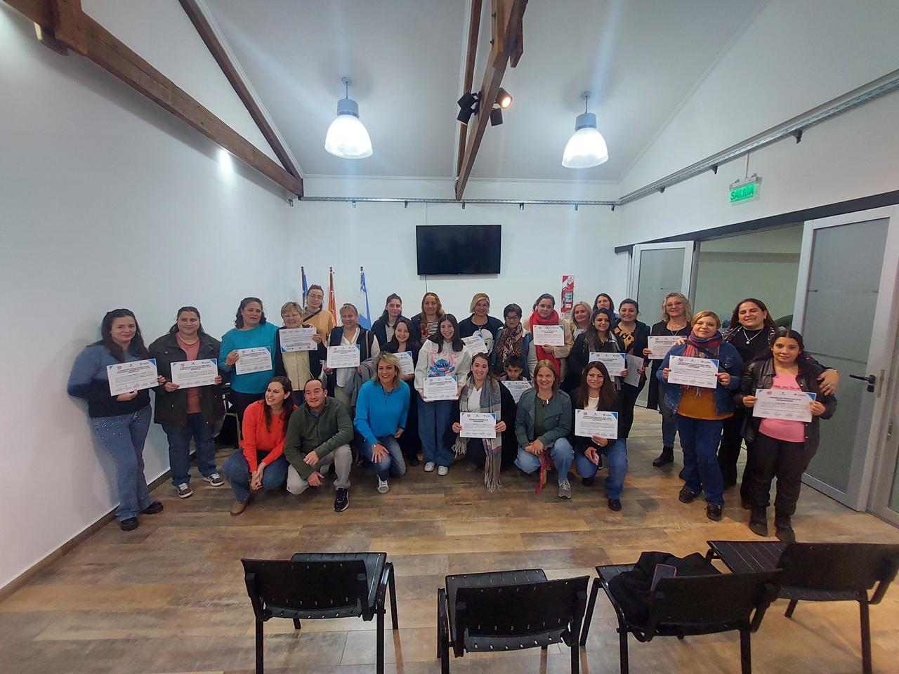 El acto estuvo encabezado po la intendente Mónica Curutchet y desde el municipio indicaron que «el cuidado de personas con discapacidad requiere 𝘂𝗻𝗮 𝗽𝗿𝗲𝗽𝗮𝗿𝗮𝗰𝗶𝗼́𝗻 𝗲𝘀𝗽𝗲𝗰𝗶́𝗳𝗶𝗰𝗮 que contemple no solo la atención a sus necesidades diarias, sino también la promoción de su autonomía, bienestar y derechos. 𝗖𝗼𝗻 𝗲𝘀𝘁𝗮 𝗳𝗼𝗿𝗺𝗮𝗰𝗶𝗼́𝗻, 𝗯𝘂𝘀𝗰𝗮𝗺𝗼𝘀 𝗯𝗿𝗶𝗻𝗱𝗮r 𝗵𝗲𝗿𝗿𝗮𝗺𝗶𝗲𝗻𝘁𝗮𝘀 𝗽𝗿𝗮́𝗰𝘁𝗶𝗰𝗮𝘀 𝘆 𝘁𝗲𝗼́𝗿𝗶𝗰𝗮𝘀 𝗾𝘂𝗲 𝗽𝗲𝗿𝗺𝗶𝘁𝗮𝗻 𝗺𝗲𝗷𝗼𝗿𝗮𝗿 la 𝗹𝗮𝗯𝗼𝗿 𝘆 𝗼𝗳𝗿𝗲𝗰𝗲𝗿 𝘂𝗻 𝗮𝗰𝗼𝗺𝗽𝗮𝗻̃𝗮𝗺𝗶𝗲𝗻𝘁𝗼 𝗱𝗲 𝗰𝗮𝗹𝗶𝗱𝗮𝗱 𝗯𝗮𝘀𝗮𝗱𝗼 𝗲𝗻 𝗲𝗹 𝗿𝗲𝘀𝗽𝗲𝘁𝗼, 𝗹𝗮 𝗶𝗻𝗰𝗹𝘂𝘀𝗶𝗼́𝗻 𝘆 𝗹𝗮 𝗱𝗶𝗴𝗻𝗶𝗱𝗮𝗱.